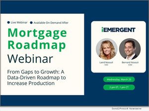 DES MOINES, Iowa, March 11, 2026 (SEND2PRESS NEWSWIRE) -- iEmergent, a forecasting and advisory services firm for the financial services, mortgage and real estate industries, today announced a new webinar series, "From Gaps to Growth: A Data-Driven Roadmap to Increase Production." The free, multi-episode series will help mortgage lenders navigate an increasingly complex mortgage environment and translate market intelligence into practical strategies for sustainable origination growth.
